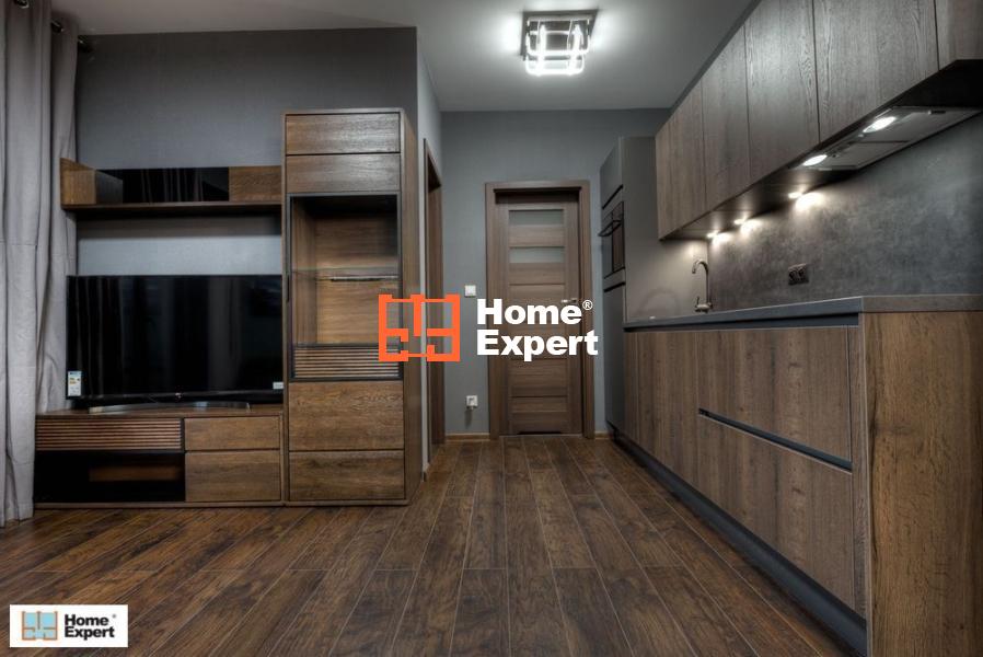 Mieszkanie jest w pełni umeblowane i wyposażone w sprzęty AGD. Wnętrze zostało zaprojektowane funkcjonalnie, z dużą ilością miejsca do przechowywania (pojemne szafy w zabudowie).