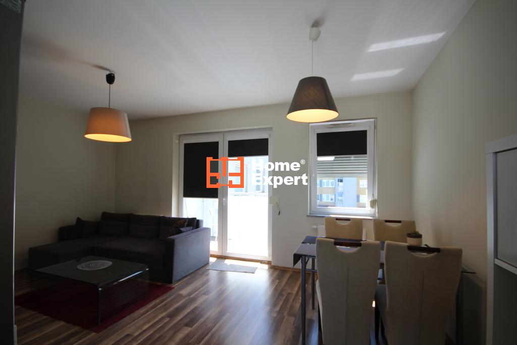 – Pokój dzienny: narożnik z funkcją spania, stolik kawowy, regał, stolik RTV, stół i 4 krzesła. – Sypialnia większa: łóżko małżeńskie, szafa w zabudowie, biurko. – Sypialnia mniejsza: łóżko z materacem. – Kuchnia: płyta ceramiczna, piekarnik, lodówko-zamrażarka, zmywarka, szafki, naczynia. – Łazienka: pralka, kabina prysznicowa, szafka, umywalka, WC. – Przedpokój: szafa w zabudowie, oświetlenie LED.