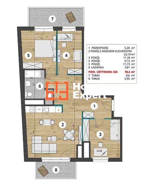 • Metraż: 78.4 m2