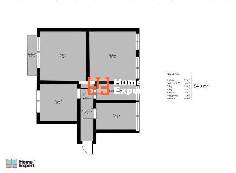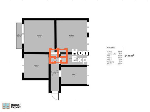 Powierzchnia całkowita: 54 m²