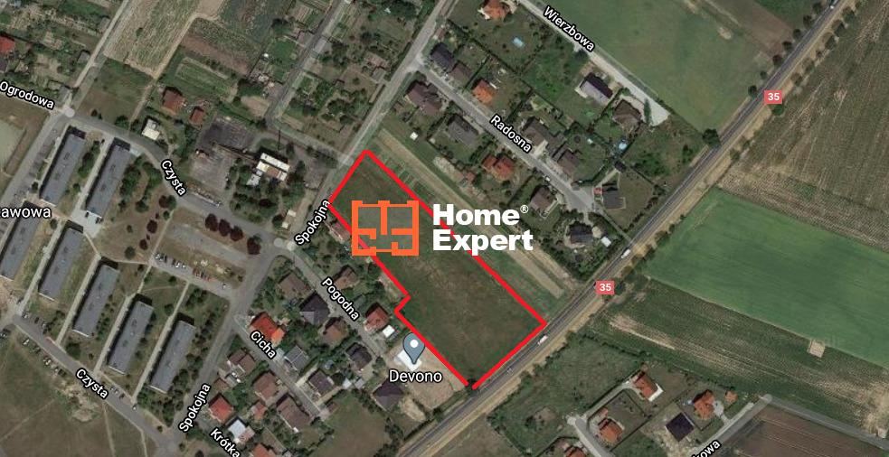 Kształt działki – prostokątny; idealny do podziału pod domy jednorodzinne lub bliźniaki