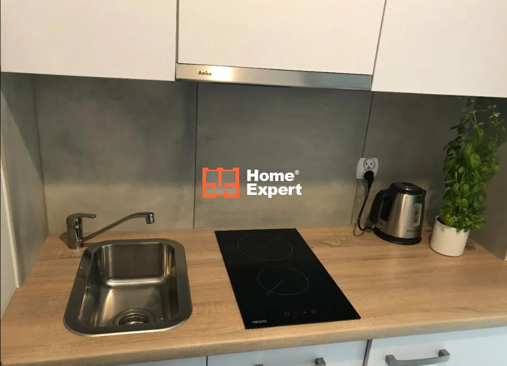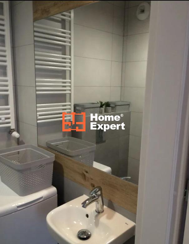 Aneks kuchenny w pełni wyposażony (płyta grzewcza, okap, lodówka), łazienka (pralka, kabina prysznicowa, wc, umywalka).