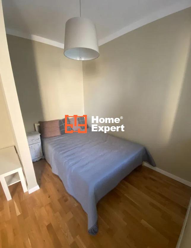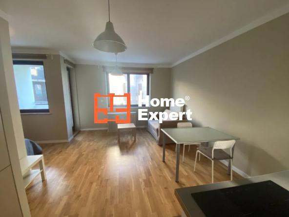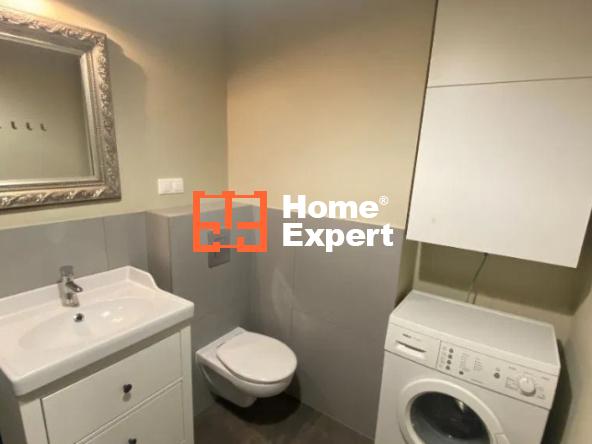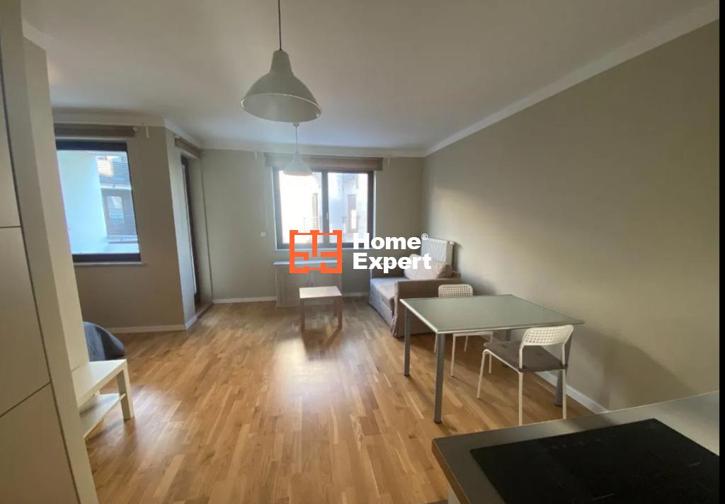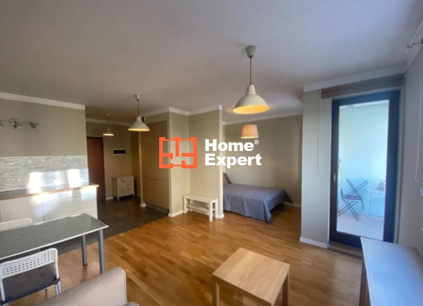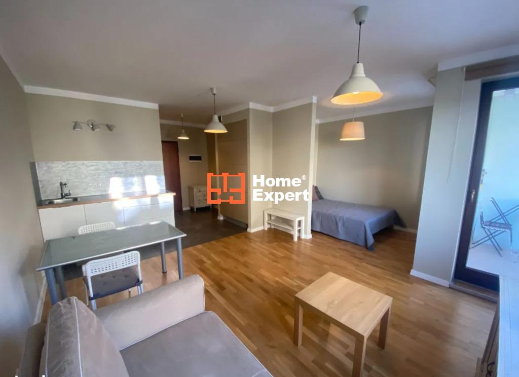 Mieszkanie składa się z salonu z rozkładaną sofą i wydzieloną częścią sypialną (łóżko 140×200), aneksu kuchennego (wyposażony w płytę indukcyjną, dużą lodówko-zamrażarkę), łazienki z kabiną prysznicową i pralką, garderoby oraz balkonu.