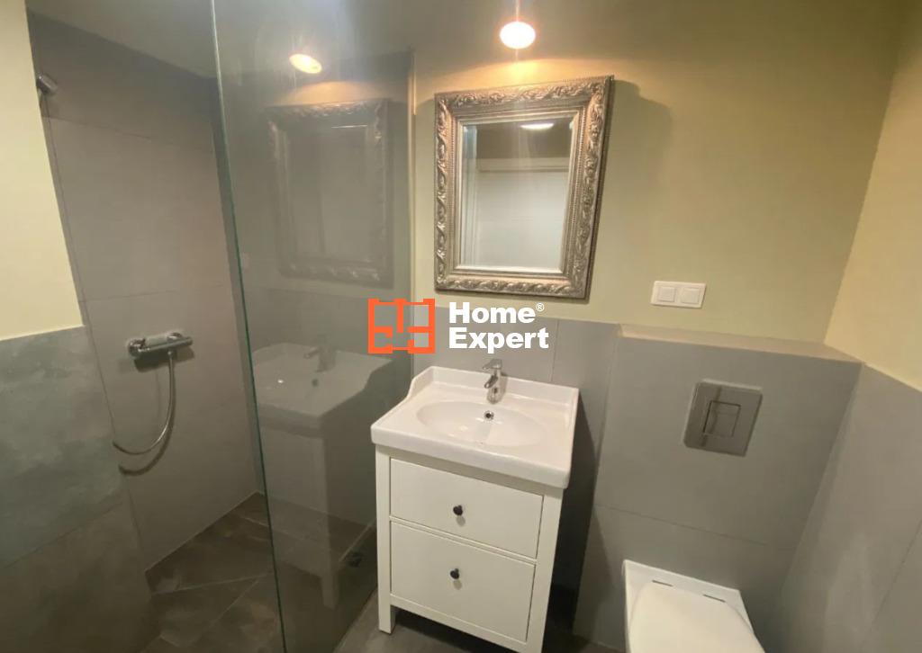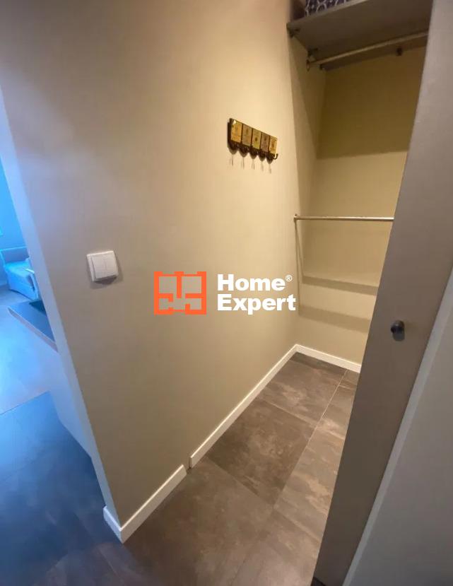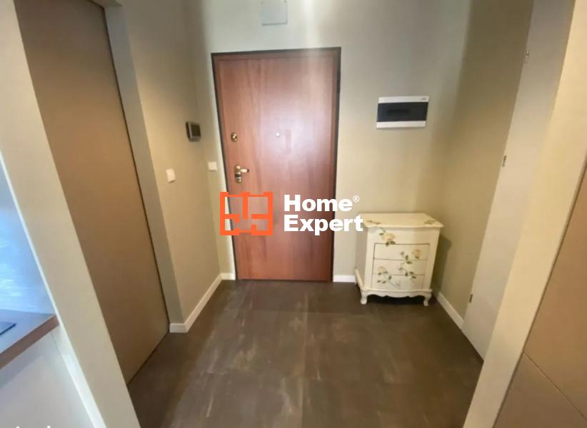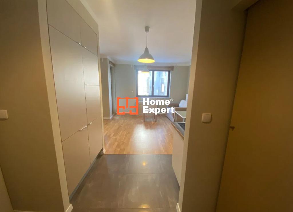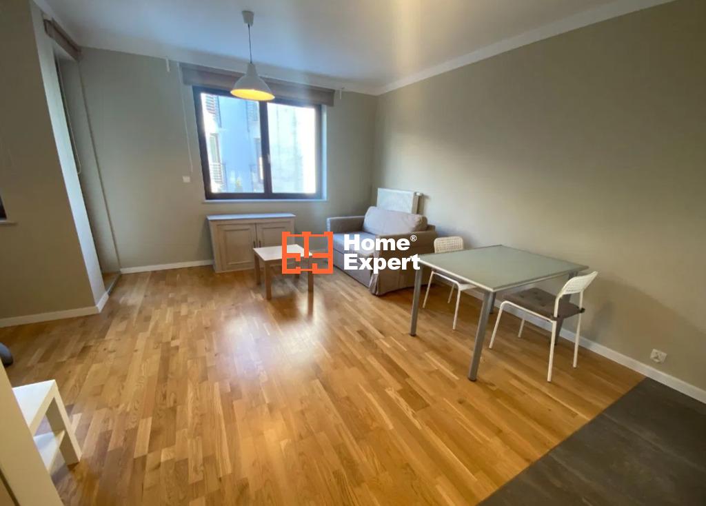 Mieszkanie składa się z salonu z rozkładaną sofą i wydzieloną częścią sypialną (łóżko 140×200), aneksu kuchennego (wyposażony w płytę indukcyjną, dużą lodówko-zamrażarkę), łazienki z kabiną prysznicową i pralką, garderoby oraz balkonu.