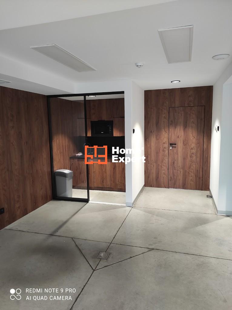 Powierzchnia open-space, mały pokój, toaleta, kuchnia umeblowana i wyposażona w sprzęt AGD,