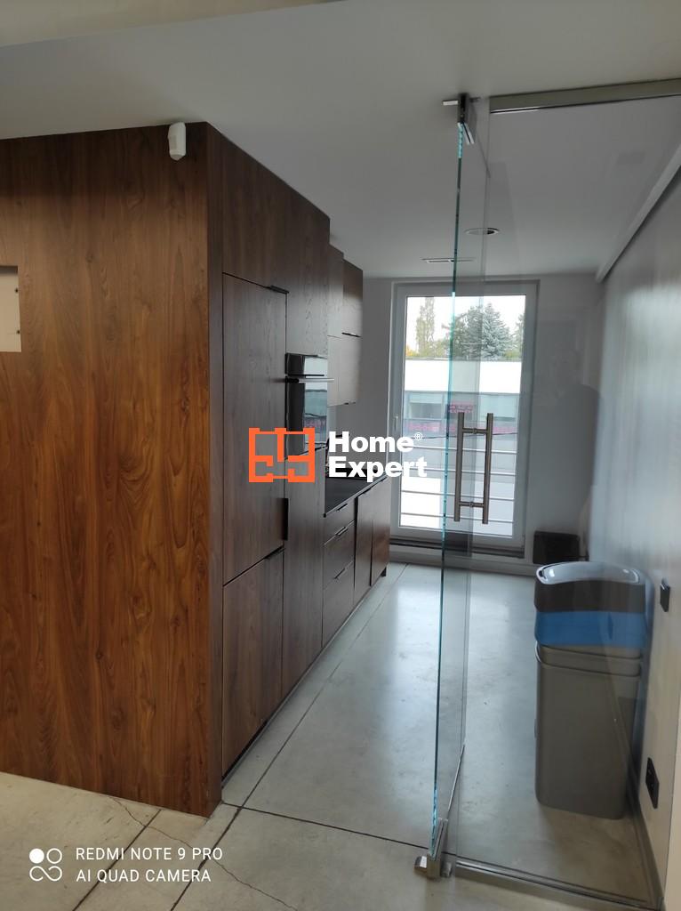 Wejście do biura jest zabezpieczone elektronicznym zamkiem z kodem co gwarantuje wysoki poziom bezpieczeństwa.