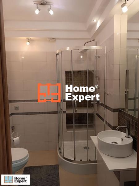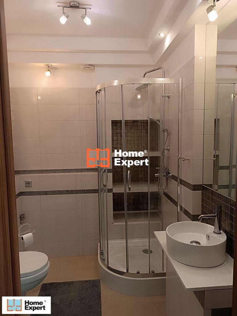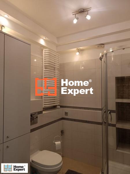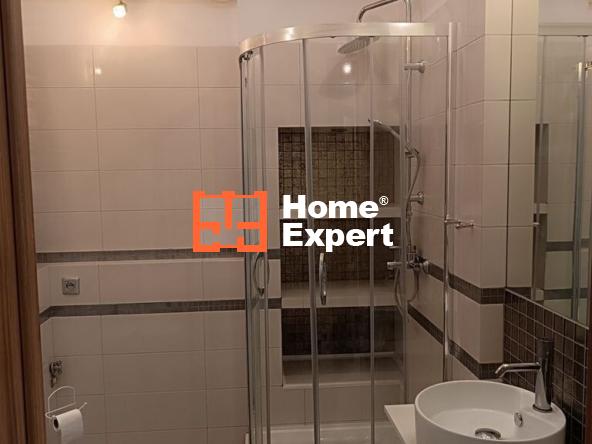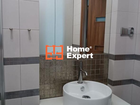 -Łazienka – wykończona według projektu architekta z sufitem w systemie 3D , oświetleniem halogenowym, duża szafa dwudrzwiowa na chemię, kosmetyki. Na podłodze gres hiszpański, biała ceramika, kabina prysznicowa. Elementami ozdobnymi są dekory łazienkowe z połyskiem. Nad umywalką wbudowane lustro z oświetleniem.