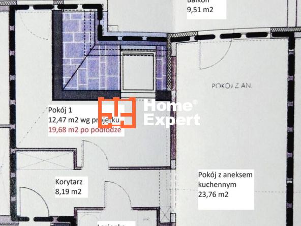 – pokój/sypialnia: 12,47 m² (ok. 19,68 m² po podłodze) bardzo przestronny dzięki skosom