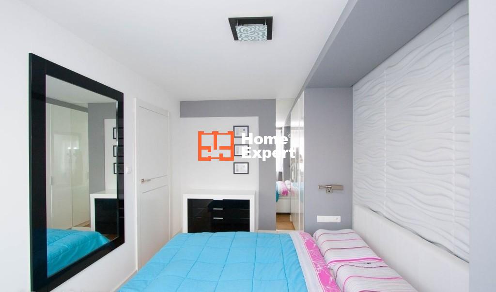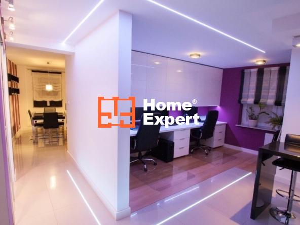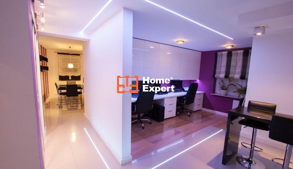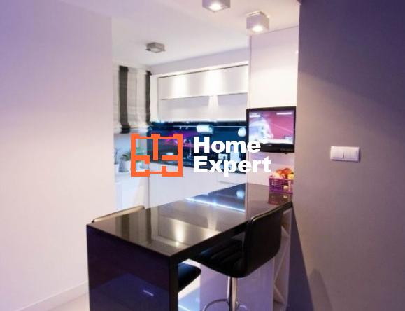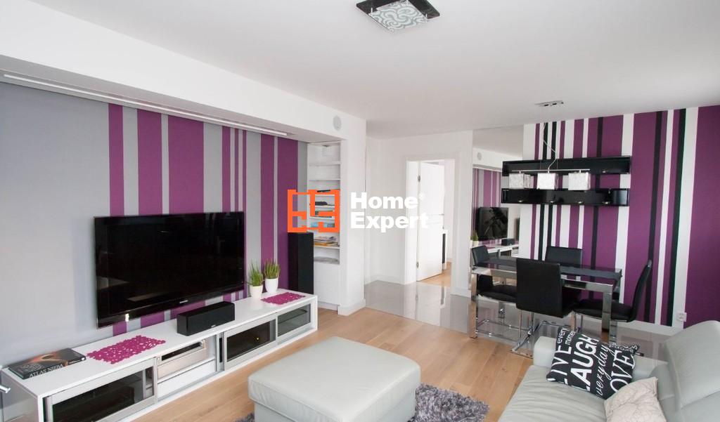 Mieszkanie oryginalnie nie miało być przeznaczone do wynajmu i zostało wykończone w wysokim standardzie z zamiarem długiego zamieszkiwania. Standard nie spotykany w mieszkaniach przeznaczonych od razu z myślą o wynajmowaniu (np. panele na podłogach, meble z IKEA itd.). Na podłogach włoskie płytki oraz deski dębowe bielone. Wszystkie ściany i sufity idealnie wygładzone. W całym mieszkaniu meble lakierowane, robione na zamówienie. Bardzo dużo różnego rodzaju sprzętu oraz oświetlenia (kolory oraz natężenie świateł ledowych w mieszkaniu można dowolnie zmieniać). Szybki Internet z sieci osiedlowej.