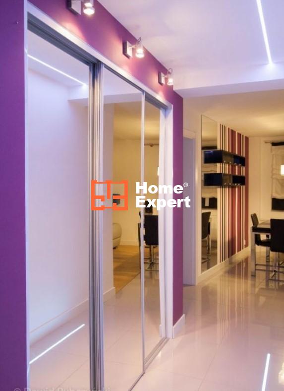 Podłoga – płytki włoskie (polerowany gres). Sufit pokryty Barisolem, domofon. Trzy duże szafy. Na podłodze i suficie ledy w kształcie litery L.