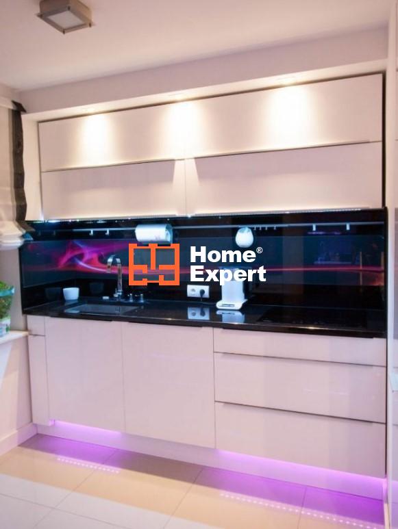 Meble na wysoki połysk, lakierowane. Blaty i stół z grubego granitu z mieniącymi się drobinkami (Star Galaxy). Dwa hokery. Wszystkie szafki, szuflady oraz carga w systemie Bluma. Wyposażenie kuchni: lodówka z zamrażalnikiem, zmywarka, piekarnik, mikrofalówka, okap oraz płyta indukcyjna. Telewizor LCD. Lodówka i zmywarka wymienione we wrześniu 2022.