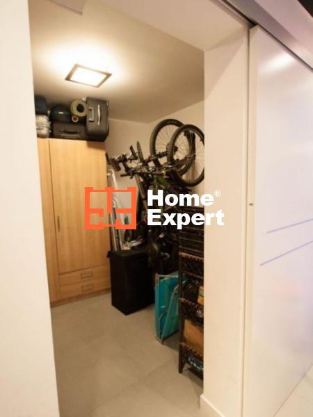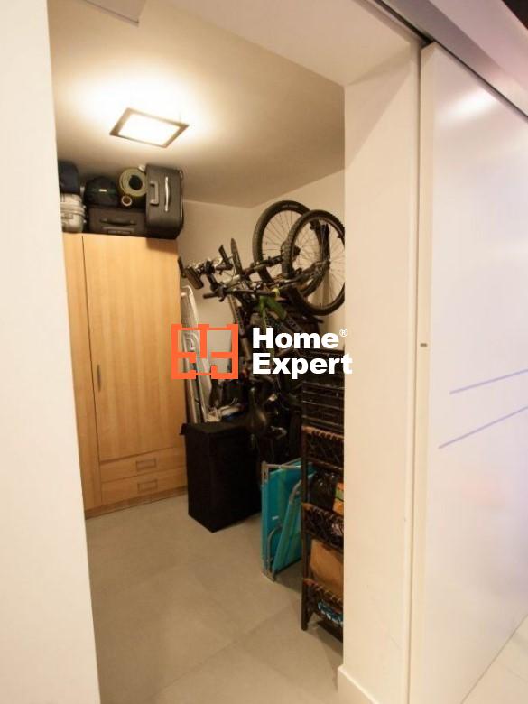 W mieszkaniu znajduje się także ok 6m2 garderoba. Znajdują się tam szafy, bardzo dużo półek na buty oraz dwa uchwyty na rowery. Wszystko chowane za zasuwanymi drzwiami.