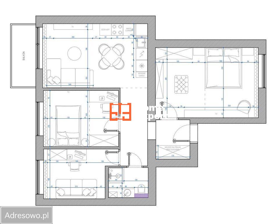 - balkon (nie wliczony w powierzchnię)