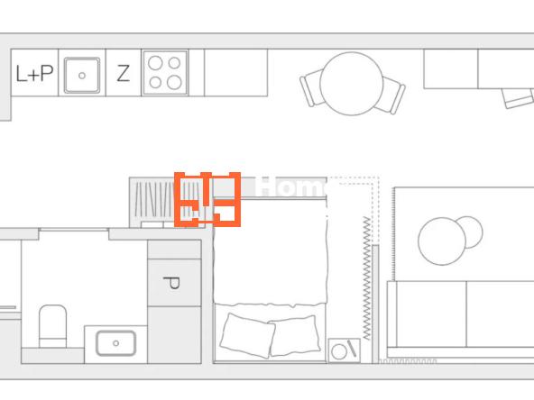 Głównego pokoju (17,7 m²) z wydzieloną sypialnią (ok. 4,5 m²)