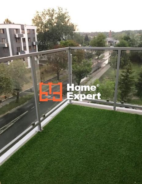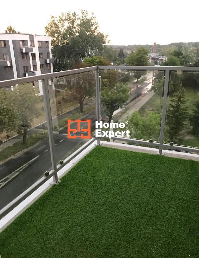 Dodatkowo, mieszkanie posiada narożny balkon wyłożony sztuczną trawą, który jest idealnym miejscem do relaksu i odpoczynku.
