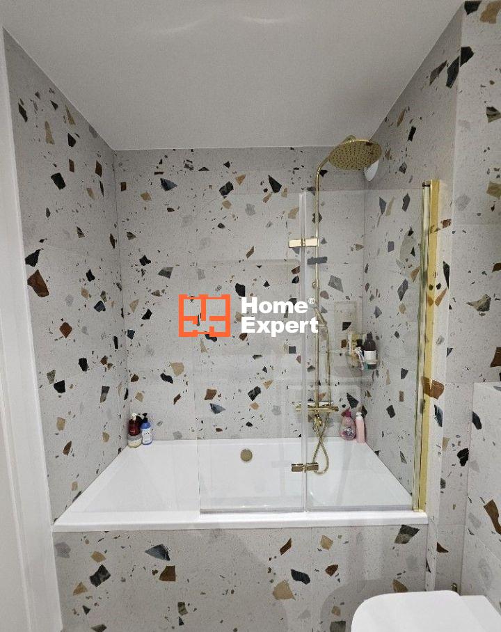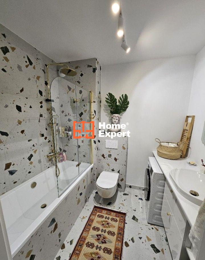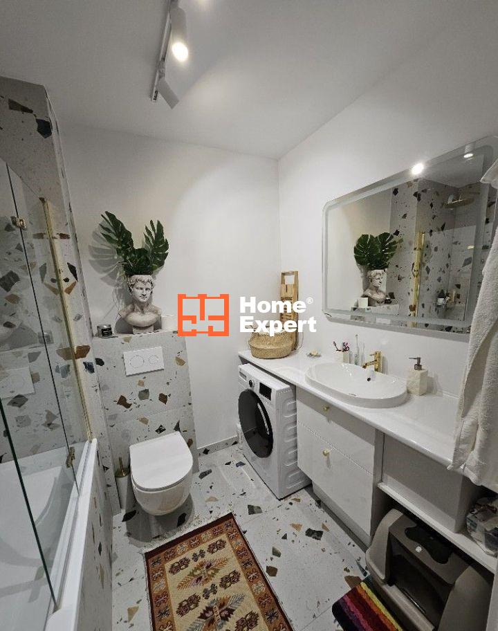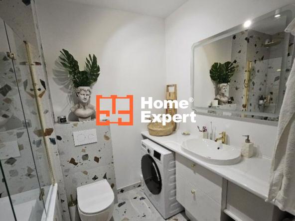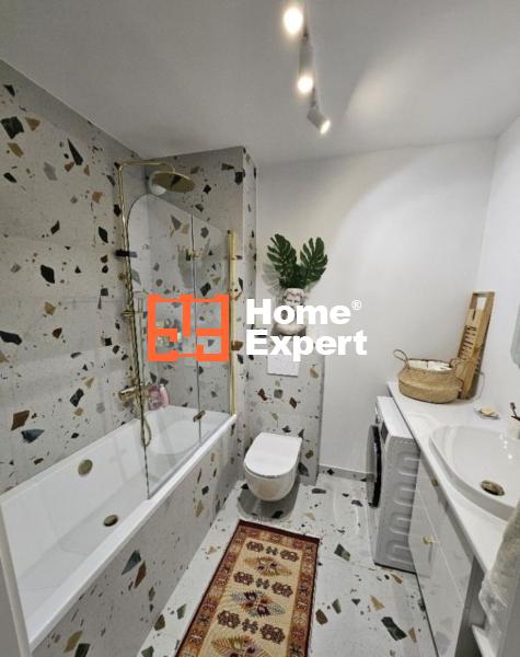 – Łazienka wykończona w płytkach gres z pojemną wanną oraz deszczownicą, która umożliwia korzystanie zarówno z relaksujących kąpieli jak i wygodnych pryszniców