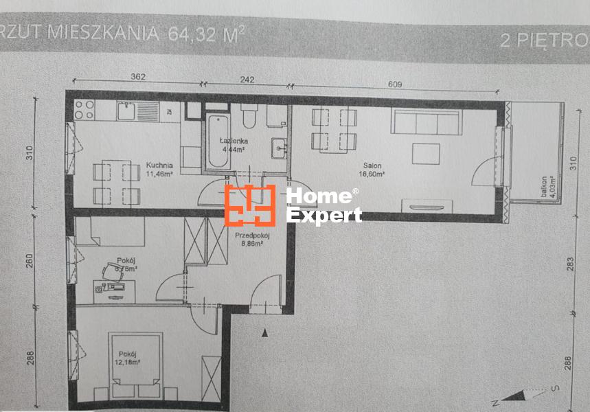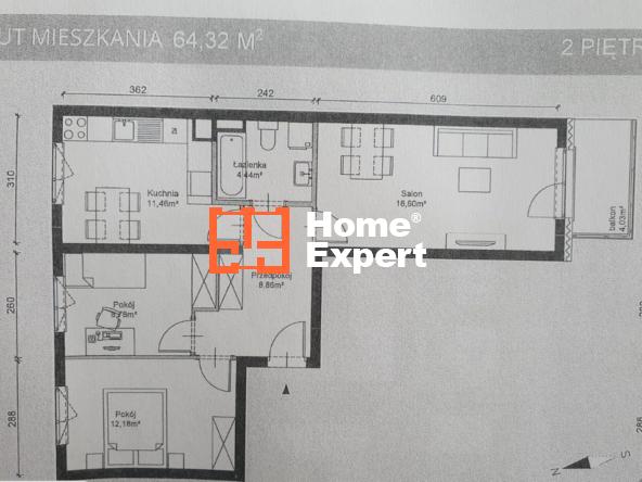 • Metraż: 64.5 m2