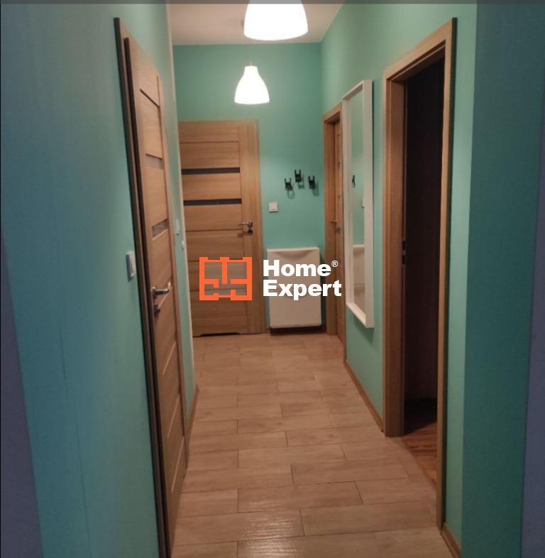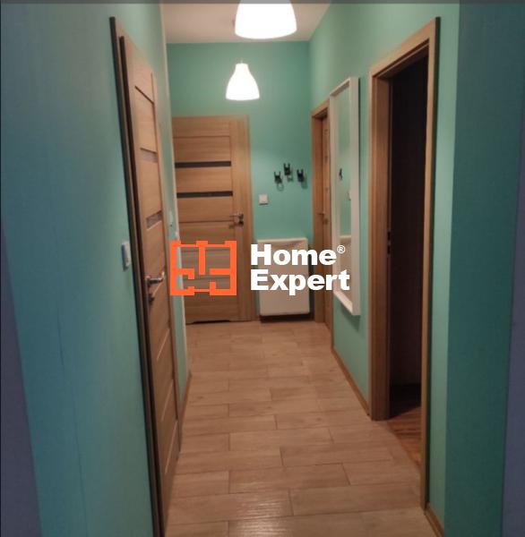 Mieszkanie urządzone, na podłodze w łazience, holu i części kuchennej płytki, w pozostałych pomieszczeniach panele. W każdym oknie rolety zewnętrzne. Garderoba z szafą w zabudowie.