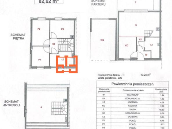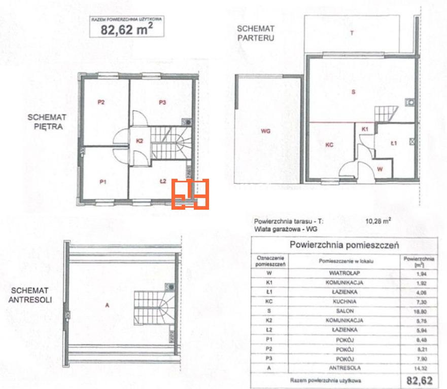 Układ wnętrza o powierzchni 82,62 m² prezentuje się następująco: