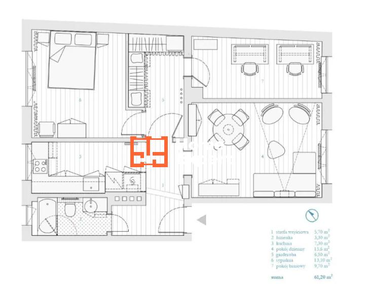 • Metraż: 61.3 m2