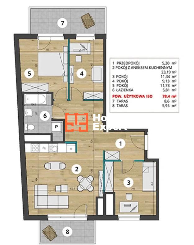 • Metraż: 78.5 m2