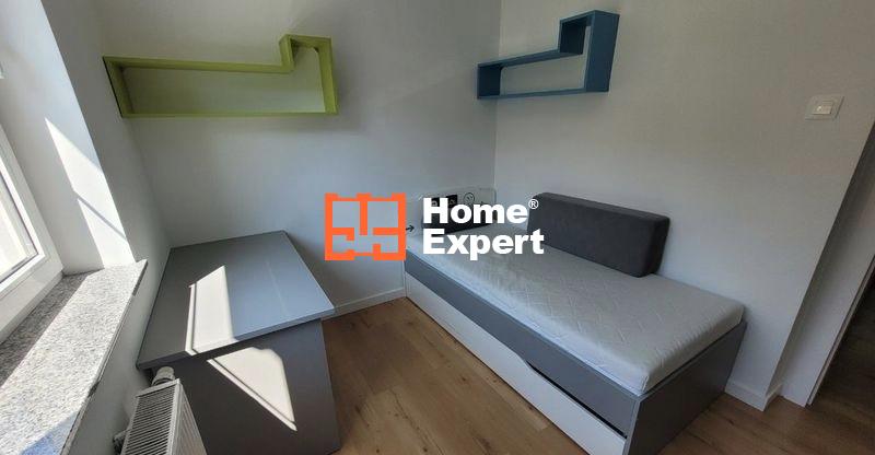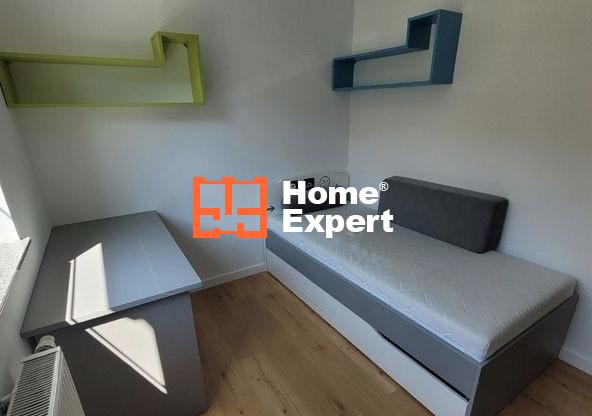 W kuchni znajduje się pełna zabudowa, lodówka, zmywarka, płyta kuchenna i piekarnik. Dodatkowo jest niewielki blat przy ścianie, który można składać. W salonie dostępny jest rozkładany stół, 4 krzesła oraz szafka RTV. W sypialni znajduje się łóżko z materacem i pojemna szafa Komandor. W pokoju dziecięcym jest pełna zabudowa, biurko i łóżko. Łazienka wyposażona jest w kabinę prysznicową i pralkę. Przedpokój zawiera szafę.
