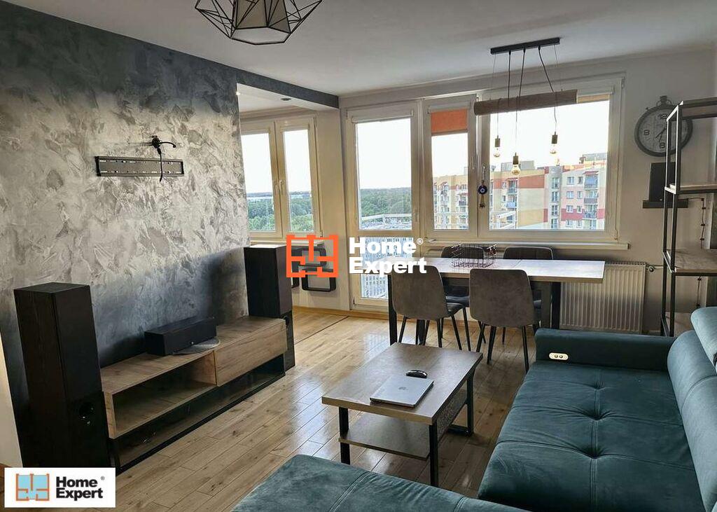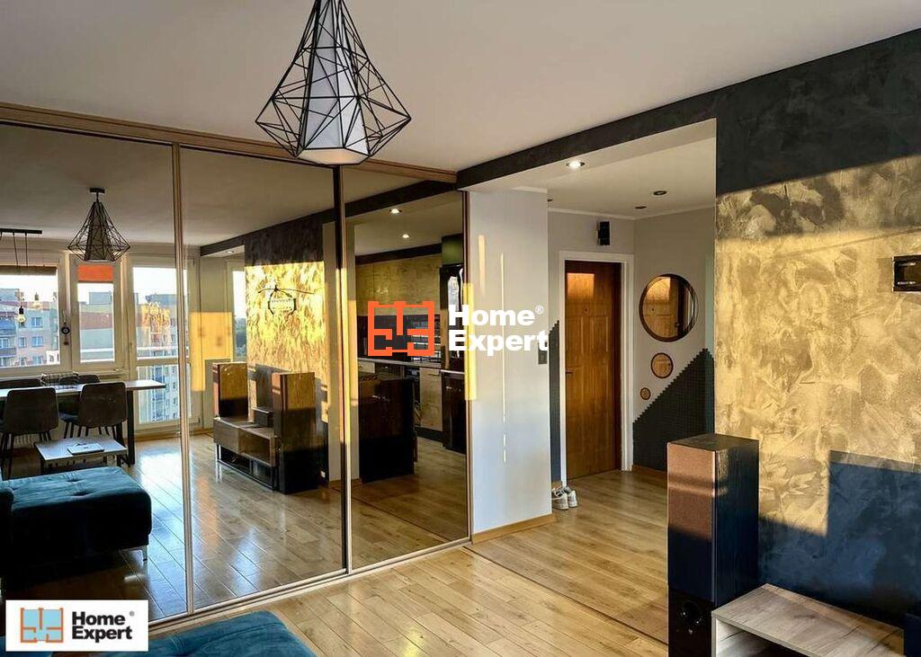NOWY DWÓR W pełni wyposażone i gotowe do zamieszkania 2 pokoje na 10 piętrze.  Sprzedaję mieszkanie, które urządzałem dla siebie. Zależało mi na wygodzie i solidnych materiałach, dlatego są tu meble na wymiar (okucia Blum, stalowe ramy), lita drewniana deska na podłodze i porządne AGD. Lubię światło i przestrzeń z 10. piętra mam widok poza miasto, a przy dobrej pogodzie widać Ślężę. Jest cicho i prywatnie, bo nie ma okien naprzeciw. Układ: salon z aneksem, sypialnia, łazienka z wanną i balkon.  Wykończenie: farby Dulux EasyCare, akcenty Jeger Industrial, klimatyzacja, okablowanie pod kino domowe. Co zostaje (żeby można było mieszkać od razu) – kuchnia na wymiar: płyta i piekarnik Kernau, lodówka Whirlpool No Frost, zmywarka, okap w zabudowie- Samsung EcoBubble (pralko-suszarka)- zabudowy w holu i salonie- sypialnia z łóżkiem z litego drewna i materacem ortopedycznym (sprężyny + mata kokosowa)- stół rozkładany z krzesłami, szafai i regały w salonie- Kanapa narożna- Meble na wymiar w łazience- Krótko mówiąc: wnosisz walizkę i możesz mieszkać.Do mieszkania przynależy piwnica oraz schowek na półpiętrze. O okolicy (to mnie tu trzymało najdłużej) Tu wszędzie jest po prostu blisko. Po pracy wychodzę do odnowionego parku na spacer albo pobiegać. Obok są lodowisko, skatepark, tor wrotkarski, siłownie, basen i sauny. Na szybkie zakupy schodzę pod blok do Polo, a śniadaniowe pieczywo biorę w piekarni obok. Jest też warzywniak i pizzeria. Kilka kroków dalej galeria handlowa i McDonald’s. Komunikacyjnie też jest wygodnie: nowa linia tramwajowa do centrum, łatwy dojazd na lotnisko i AOW. Jeśli jeżdżę autem, korzystam z dużego, bezpłatnego parkingu przy przystanku. Mieszkanie jest gotowe do sprzedaży, posprzątane i odnowione. Można od razu rozpoczynać procesy bankowe. Jeśli chcesz obejrzeć, zadzwoń i się umówimy.