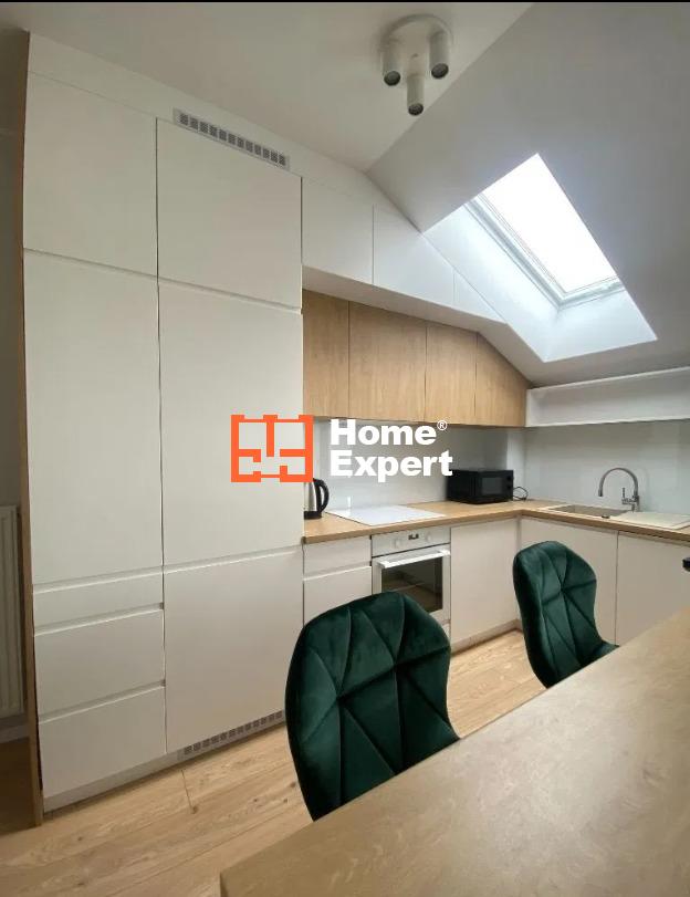 – aneks kuchenny z pełnym wyposażeniem i ogromnym blatem roboczym, meble biały lakier mat, funkcjonalne szafki; piekarnik, płyta indukcyjna, zmywarka (sprzęty Electrolux);