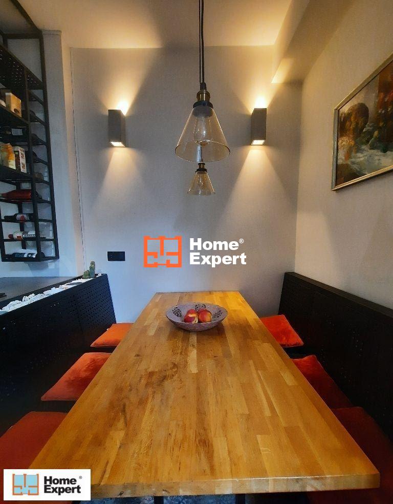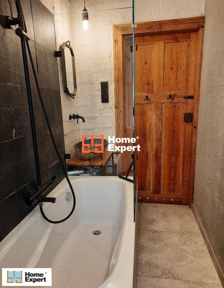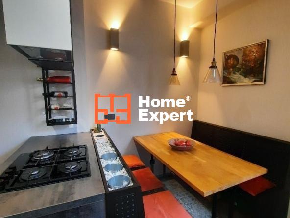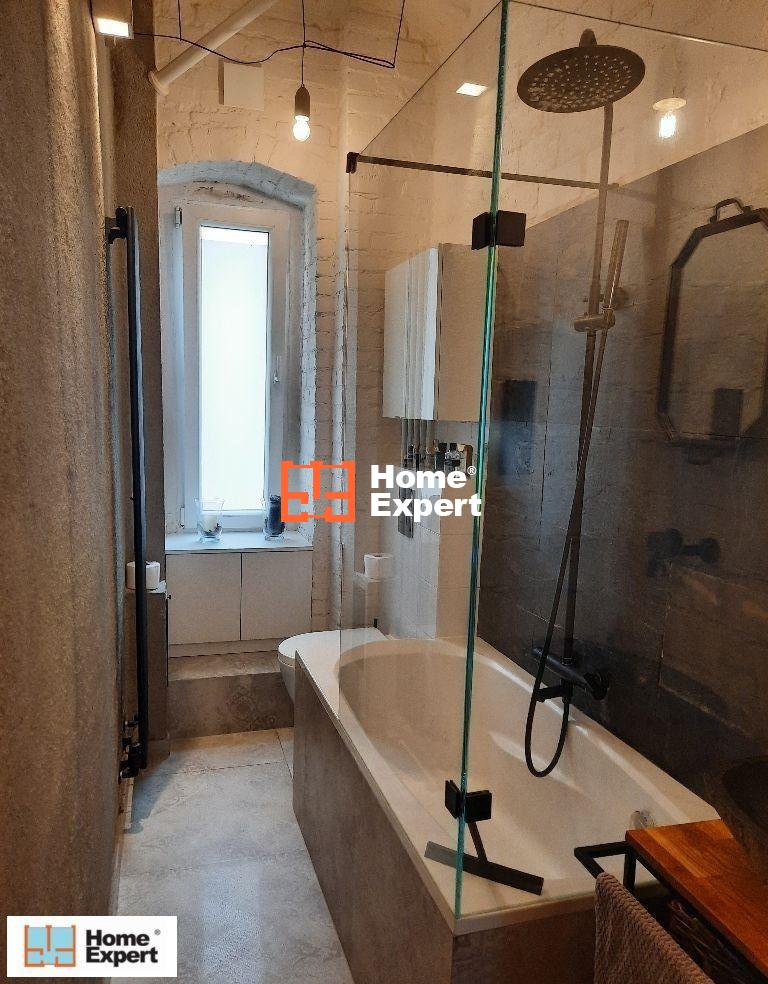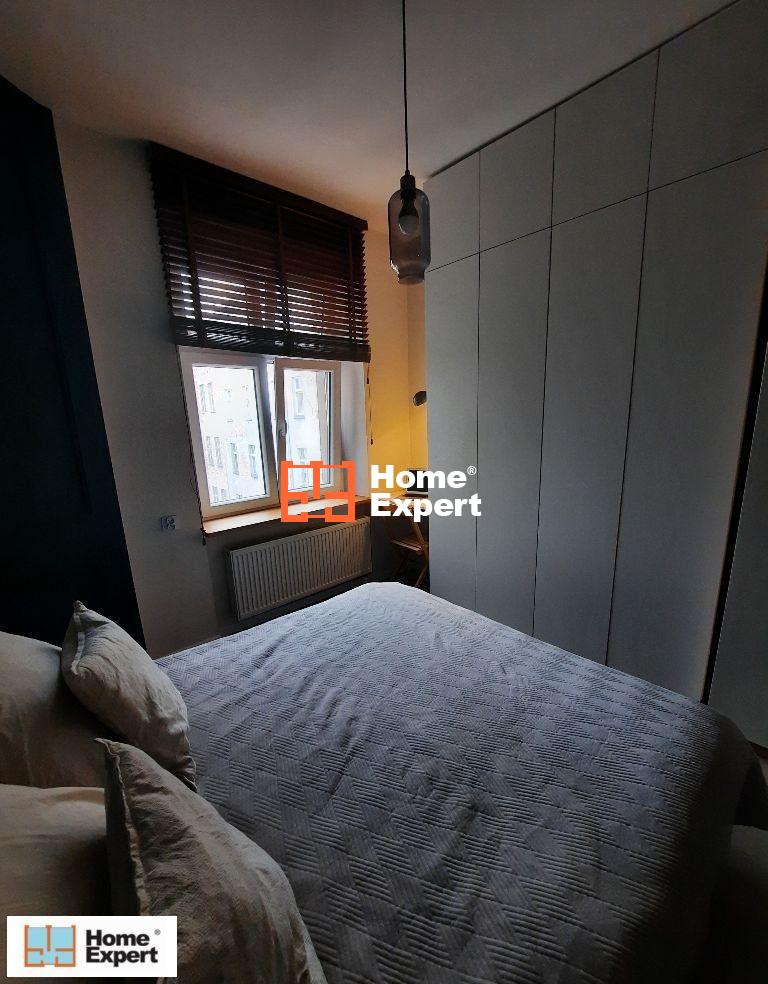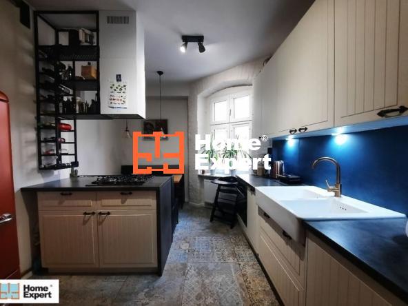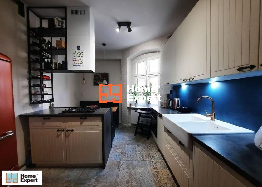 Mieszkanie posiada osobną, jasną, w pełni wyposażoną kuchnię, łazienkę oraz duży przedpokój. Wnętrza są gustownie urządzone głównie meblami vintage i robionymi na wymiar, co zapewnia maksymalne wykorzystanie przestrzeni i dużo miejsca do przechowywania.