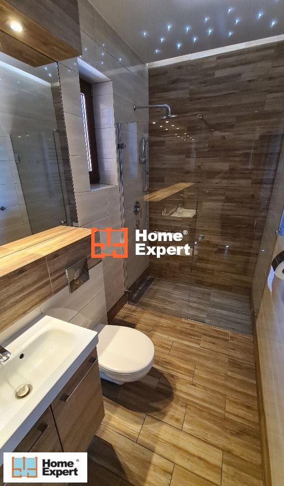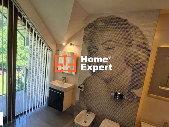 – łazienka + WC (wanna + kabina prysznicowa) + duże okno z widokiem na ogród 12 m2