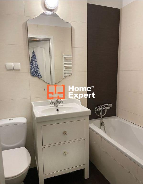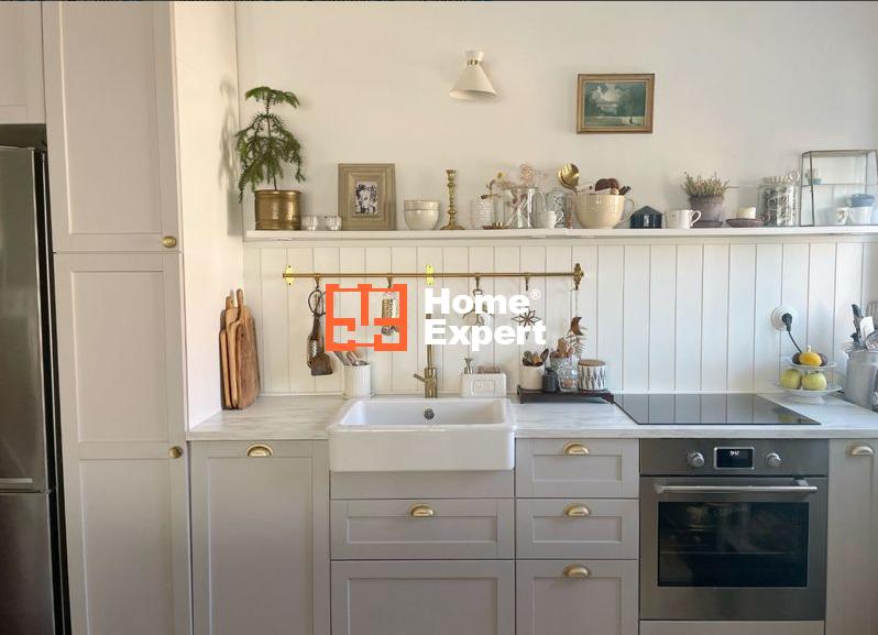 – Nowoczesna kuchnia z drewnianymi frontami i ceramicznym zlewem jest w pełni wyposażona w nowoczesne sprzęty, takie jak lodówka, piekarnik, płyta indukcyjna i zmywarka.