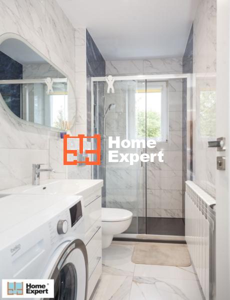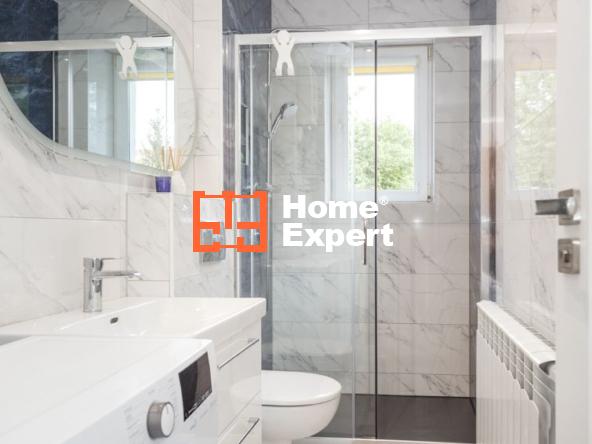 Jest zamontowany nowy piec elektryczny (nie ma strachu, że gaz się ulatnia, albo że ktoś się zatruje dwutlenkiem węgla). Podłogi w salonie i sypialni drewniane, a w kuchni i przedpokoju panele imitujące drewno. W łazience piękne płytki a la marmur, duże lustro, podświetlenie led, ciemna faktura płytek pod prysznicem. Nie ma brodzika, jest porządnie zrobiony odpływ liniowy, łatwiejszy w czyszczeniu i dużo bardziej estetyczny. Kabina posiada deszczownicę oraz drzwi przesuwne (nie chlapiemy łazienki przy wychodzeniu).