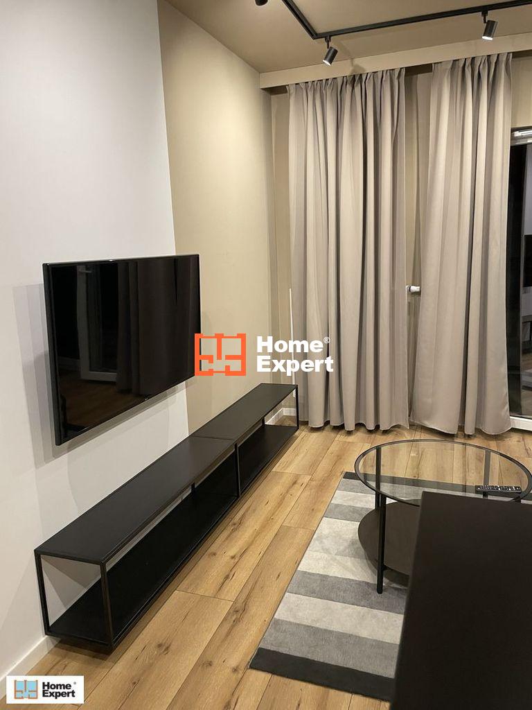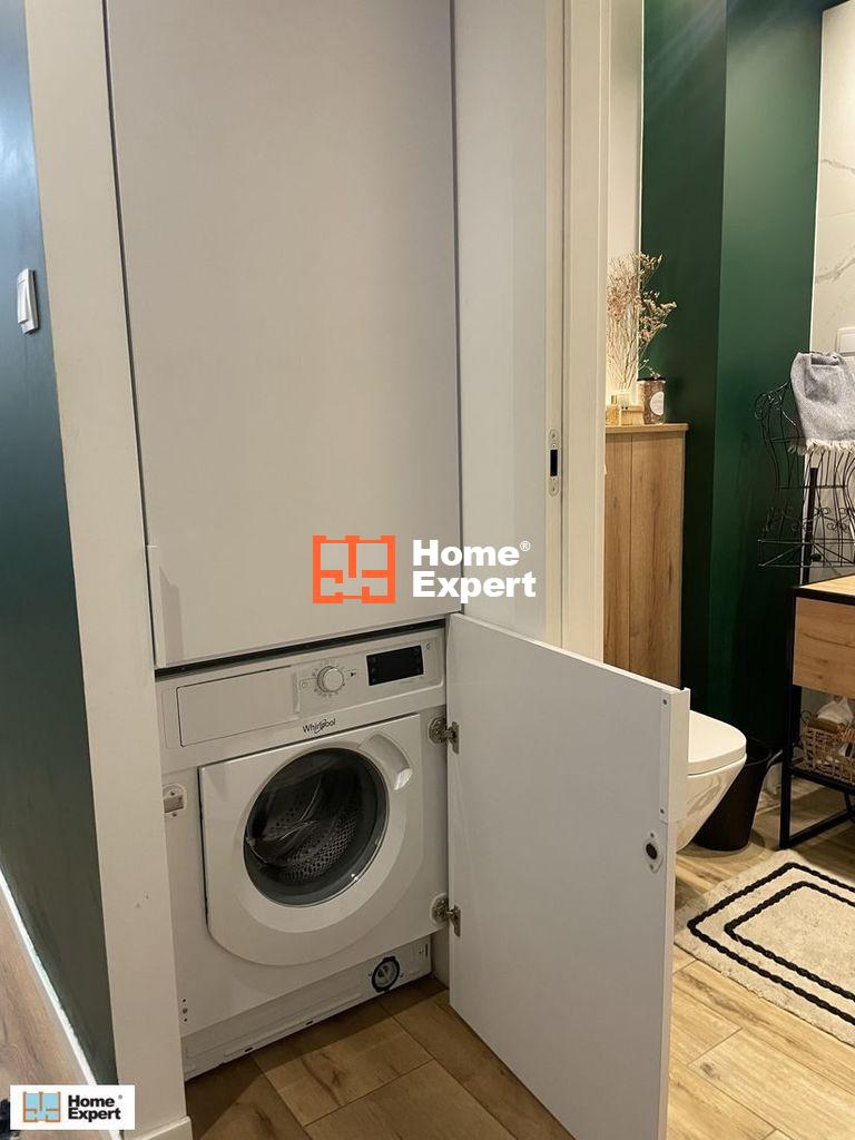 Kawalerka zawiera pralkę, zmywarkę, telewizor, duży balkon oraz miejsce postojowe na parkingu podziemnym.