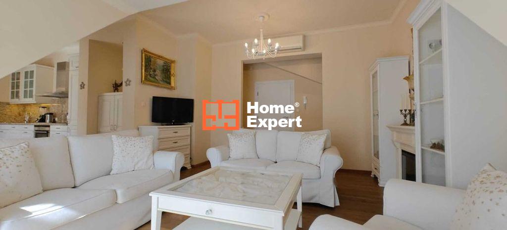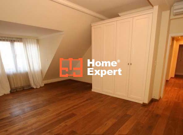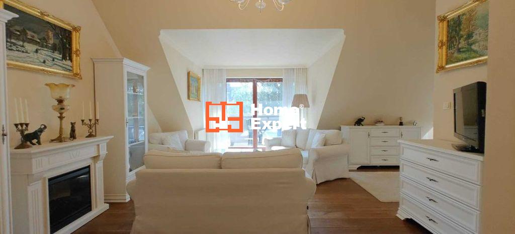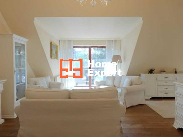 Dębowe drewniane olejowane podłogi, gipsowa sztukateria oraz drewniane mansardowe okna dodają elegancji wnętrzu.