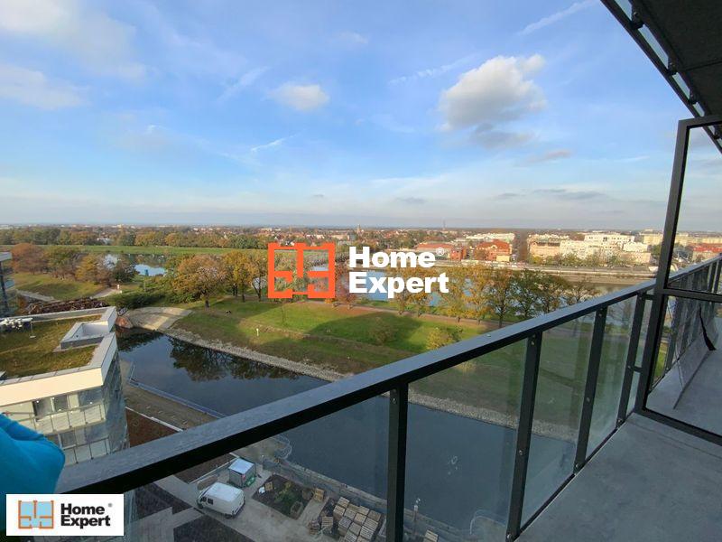 Mieszkanie położone jest na 11 piętrze z pięknym widokiem na Odrę i składa się z salonu z aneksem kuchennym oraz łazienki.