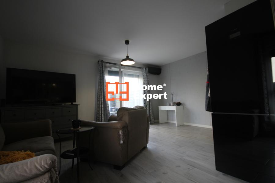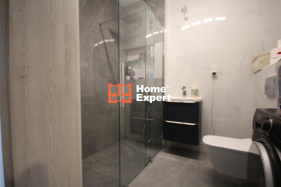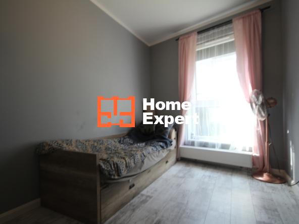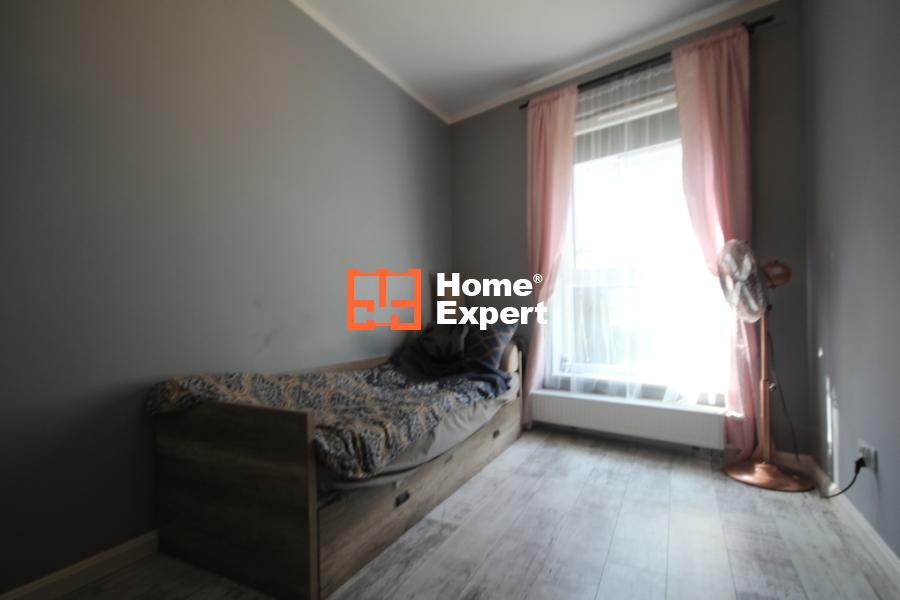 Wnętrze mieszkania wykończone jest z dbałością o szczegóły – na podłogach w pokojach położone są panele, natomiast w przedpokoju, salonie, kuchni oraz łazience znajdują się płytki. Salon zdobi beton architektoniczny, a dodatkowo zamontowana klimatyzacja zapewnia komfort przez cały rok. Z salonu prowadzi wyjście na prywatny ogród o powierzchni 207 m², który stwarza idealne warunki do relaksu i spędzania czasu na świeżym powietrzu. Dodatkowe ogrodzenie zapewnia intymność i komfort.