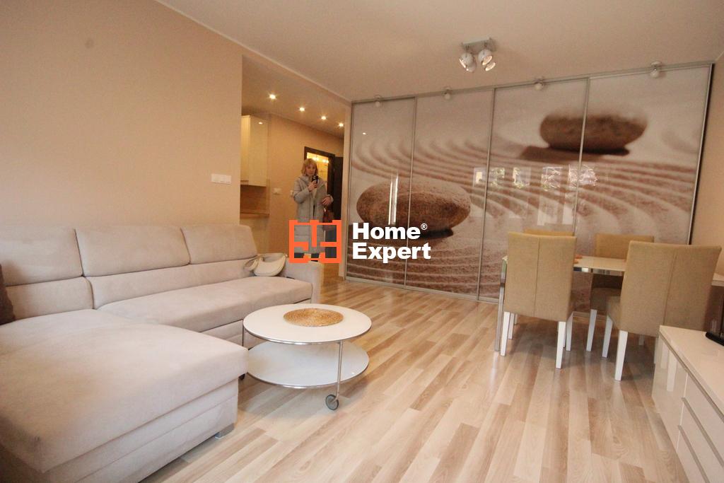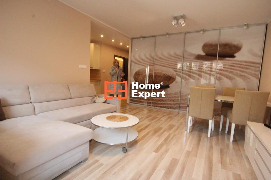 Salon: Przestronny, z wydzielonym aneksem kuchennym.Aneks kuchenny: W pełni wyposażony, meble na wymiar, lodówka w zabudowie, piekarnik, okap, zmywarka, płyta indukcyjna, zlew z konglomeratu.Sypialnia: Przytulna przestrzeń z doskonałymi rozwiązaniami storage’owymi.