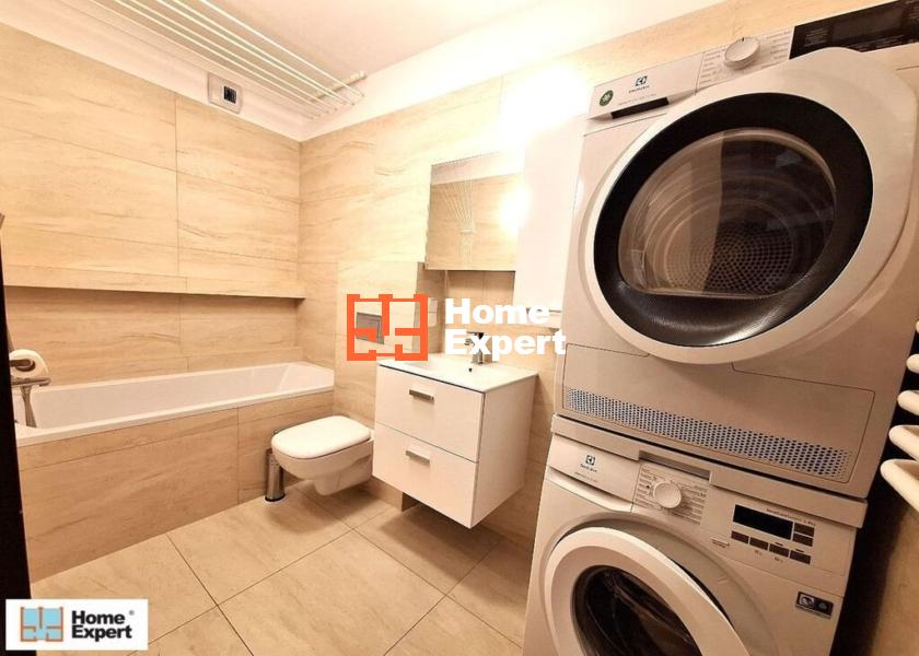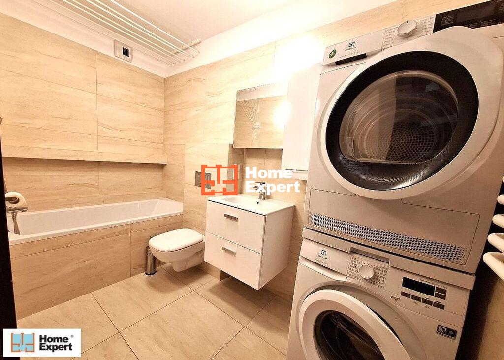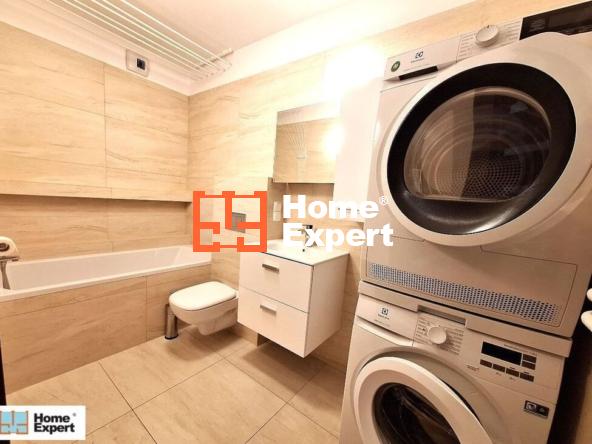 Mieszkanie gotowe do zamieszkania, w pełni wykończone i wyposażone: klimatyzacja, zmywarka, piekarnik, okap, pralka, suszarka, płyta indukcyjna, lodówko-zamrażarka, łóżko małżeńskie, narożnik. Do mieszkania przynależą dwa balkony, dwie łazienki (jedna z przestronnym prysznicem, druga z wanną).