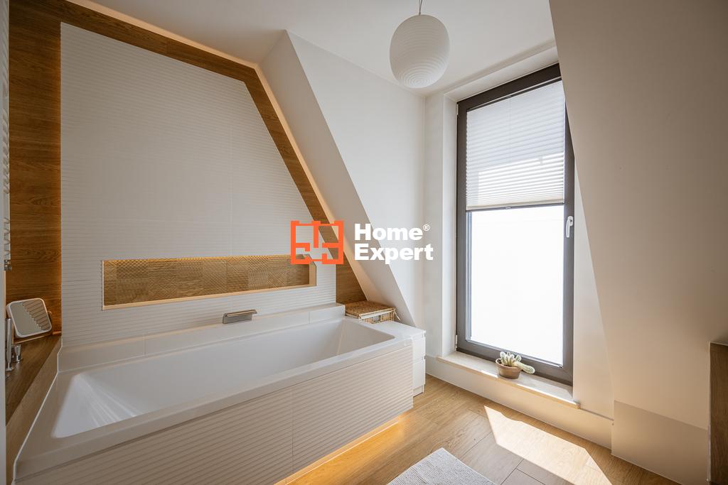 Do sprzedania mieszkanie dwupoziomowe o metrażu 95,5 m2 w budynku z 2017 roku. Budynek 3 piętrowy, kameralny z windą. Oferowane mieszkanie do sprzedaży jest wykończone w wysokim standardzie (deska Iroko na podłodze, kamienne blaty, lampy Moooi Raimond). Okna skierowane w kierunku południowo-zachodnim przez co mieszkanie jest jasne i słoneczne.