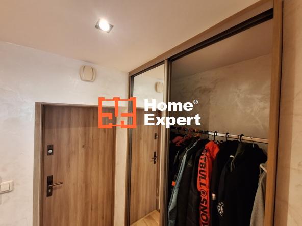 Posiada pojemną garderobę z dwoma szafami. W garderobie światło oraz gniazdko elektryczne.