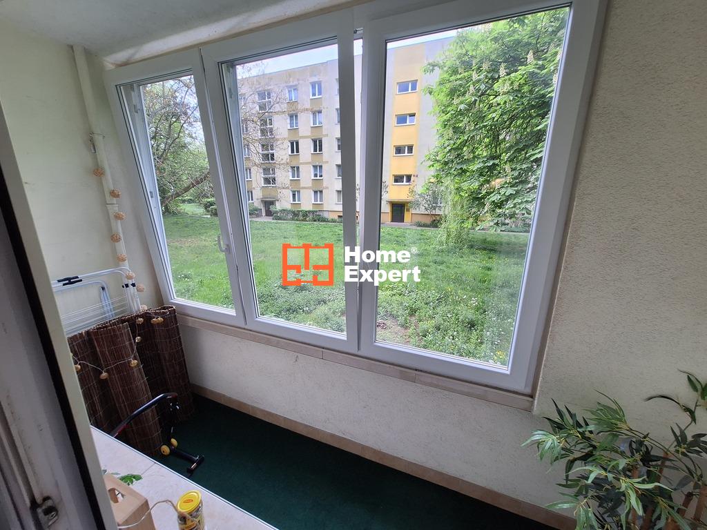 Mieszkanie na wysokim parterze z dużym zabudowanym oknami balkonem