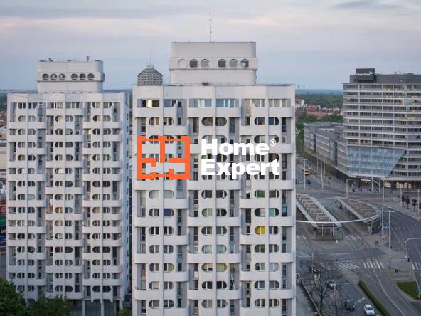 Wrocławski Manhattan to słynne 16 piętrowe wrocławskie budynki (arch. J. Grabowska-Hawryluk), w kompleksie usługowo-handlowym, po modernizacji w 2017/2018 roku (dwie nowe windy, nowe elewacje, klatki schodowe, korytarze itd). C.O. i gorąca woda z sieci miejskiej, bardzo szybki internet. Najlepsza lokalizacja dla studentów i pracowników biurowych we Wrocławiu.