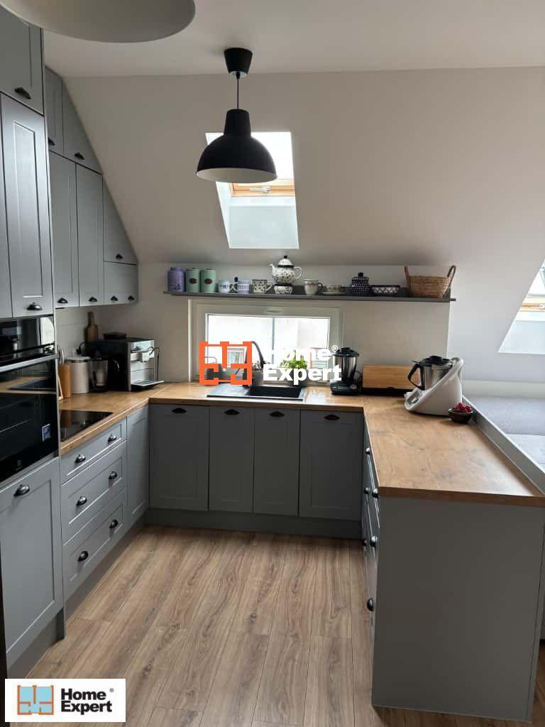 - Kuchnia w zabudowie, wykonana na wymiar, wraz ze sprzętem AGD (płyta, piekarnik, okap, zmywarka, lodówka).