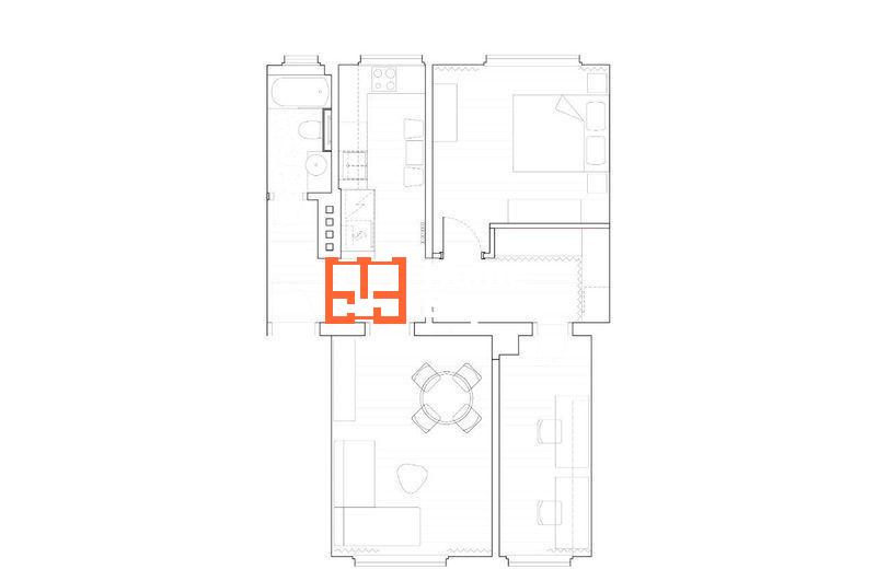Układ mieszkania podzielony na strefy: dzienną i prywatną