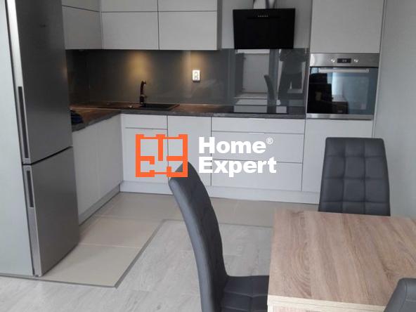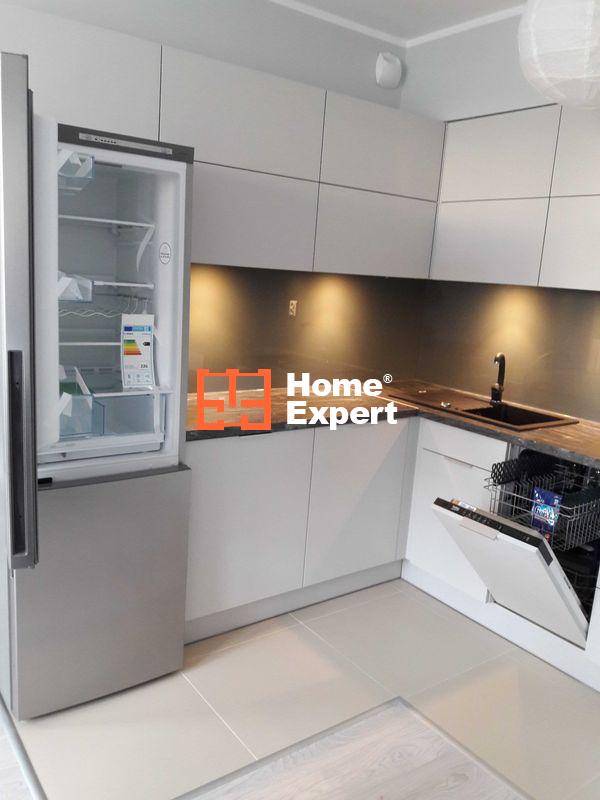 Kuchnia jest kompleksowo wyposażona w sprzęt AGD Bosch i Beko (płyta grzewcza, piekarnik, zmywarka, lodówka, pochłaniacz) o klasie A+ i A++. W sypialni oraz przedpokoju znajdują się zabudowane szafy przesuwne z systemem regulowanych półek.